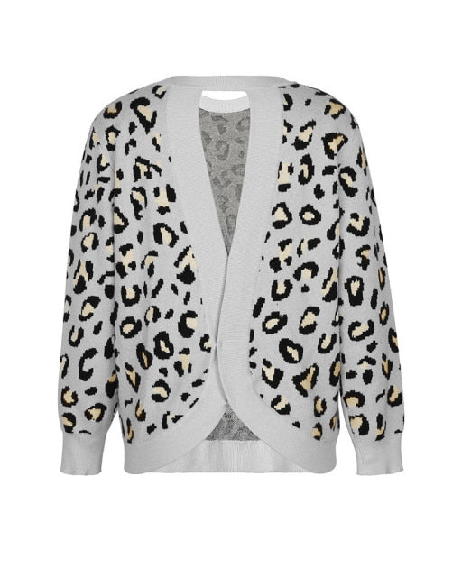 Sexy Open Back Leopard Sweater Women